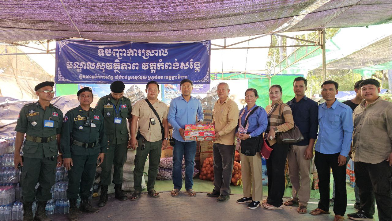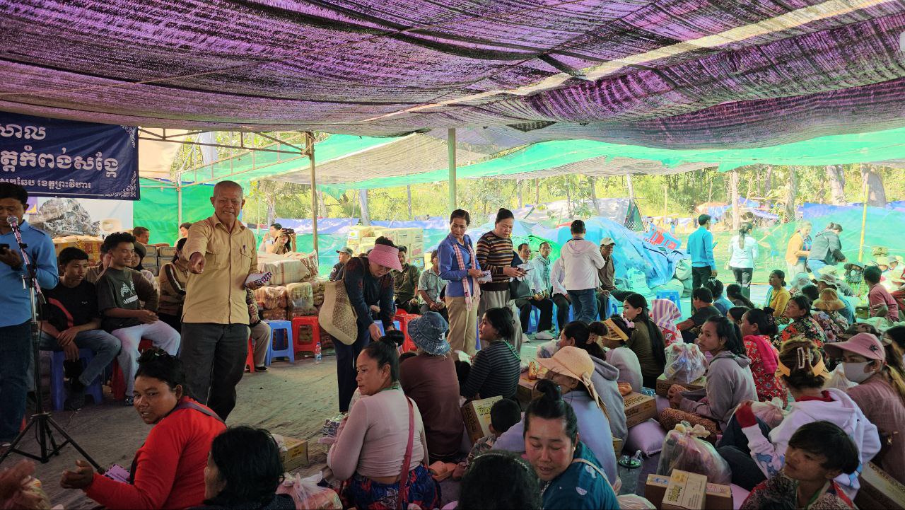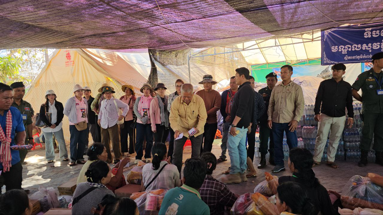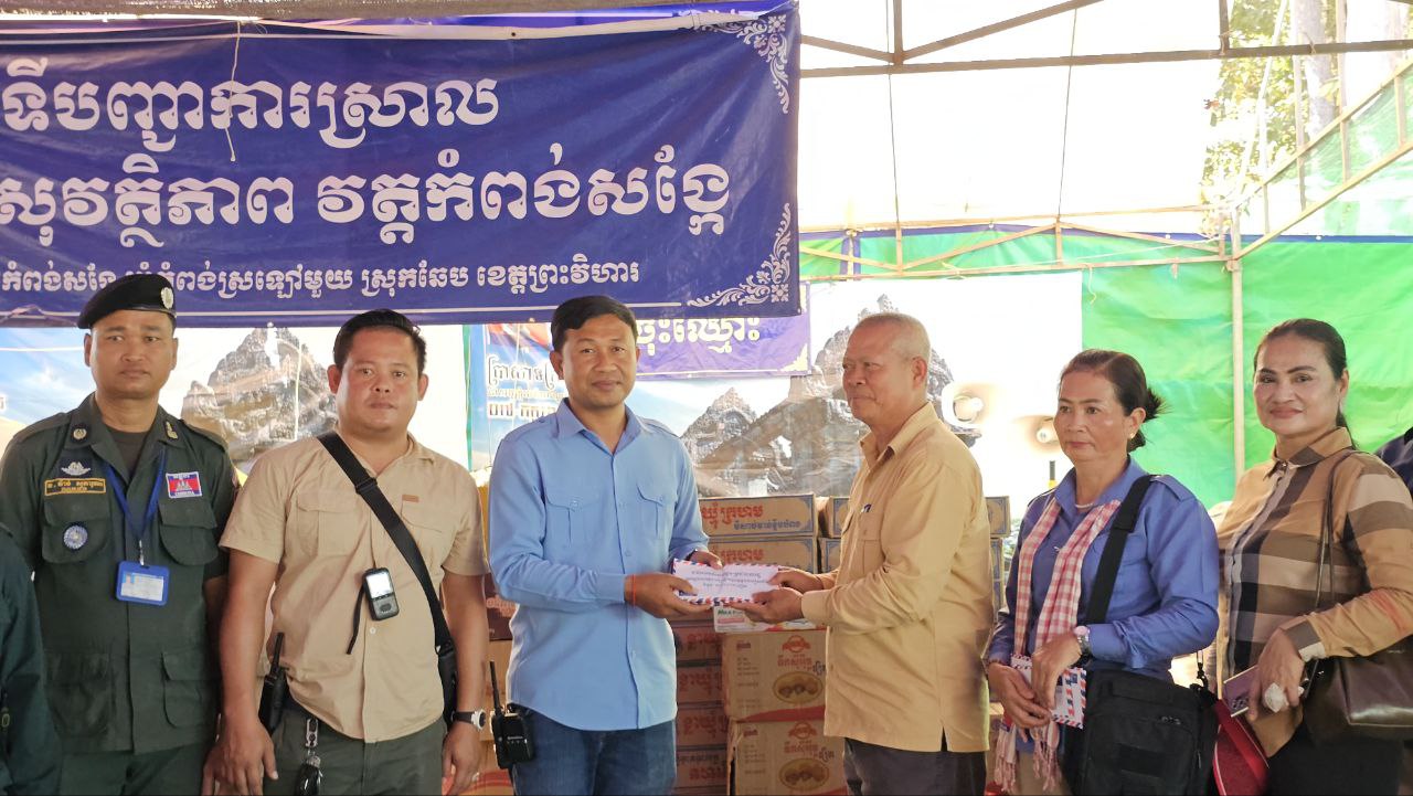 (ព្រះវិហារ)៖ លោក រស់ វីរ៉េត មេឃុំអារក្សត្នោត ស្រុកស្ទឹងត្រង់ ខេត្តកំពង់ចាម នៅថ្ងៃទី២០ ខែធ្នូ ឆ្នាំ២០២៥ បានដឹកនាំមន្ត្រីរាជការ ប្រជាពលរដ្ឋ និងបងប្អូនអាជីវករ នាំអំណោយស្បៀង ថវិកា មកចែកជូនបងប្អូនប្រជាពលរដ្ឋភៀសសឹកចំនួន ២០០គ្រួសារ កំពុងស្នាក់នៅបណ្តោះអាសន្នមណ្ឌលសុវត្ថិភាពវត្តកំពង់សង្កែ ក្នុងឃុំកំពង់ស្រឡៅមួយ ស្រុកឆែប ខេត្តព្រះវិហារ ជាប់ព្រំដែនឡាវ ក្រោមវត្តមានទទួលស្វាគមន៍យ៉ាងកក់ក្តៅពីលោក ឃិត សុធារ៉ា អភិបាលស្រុកឆែប។