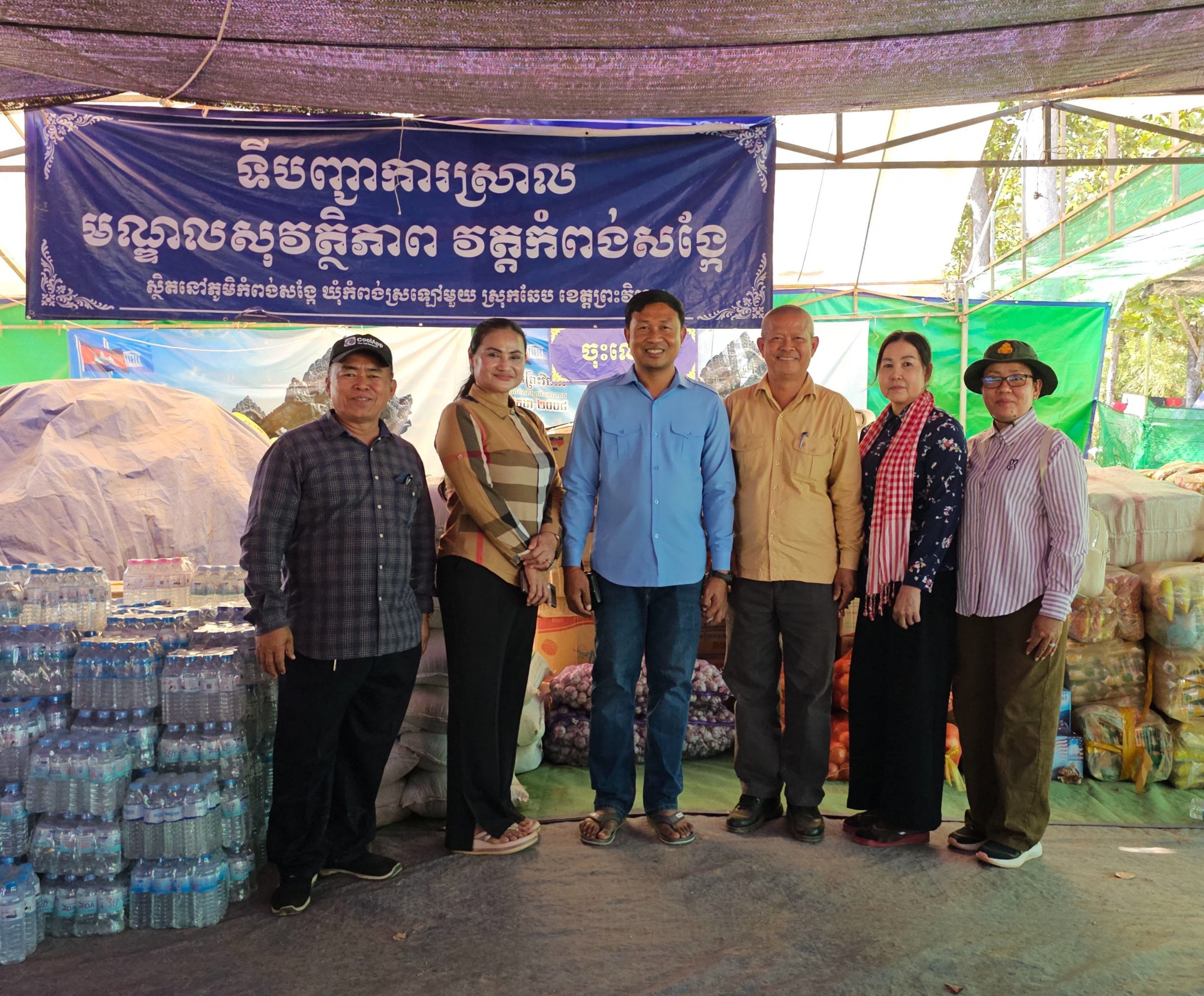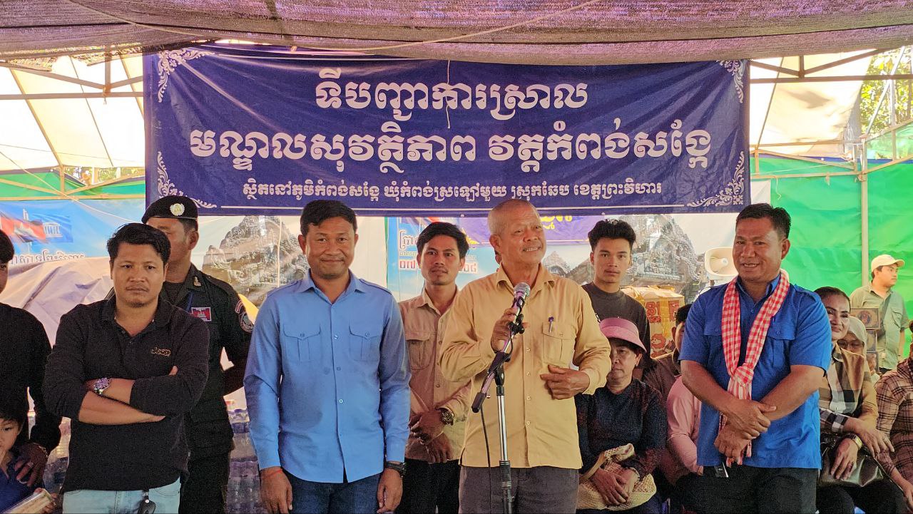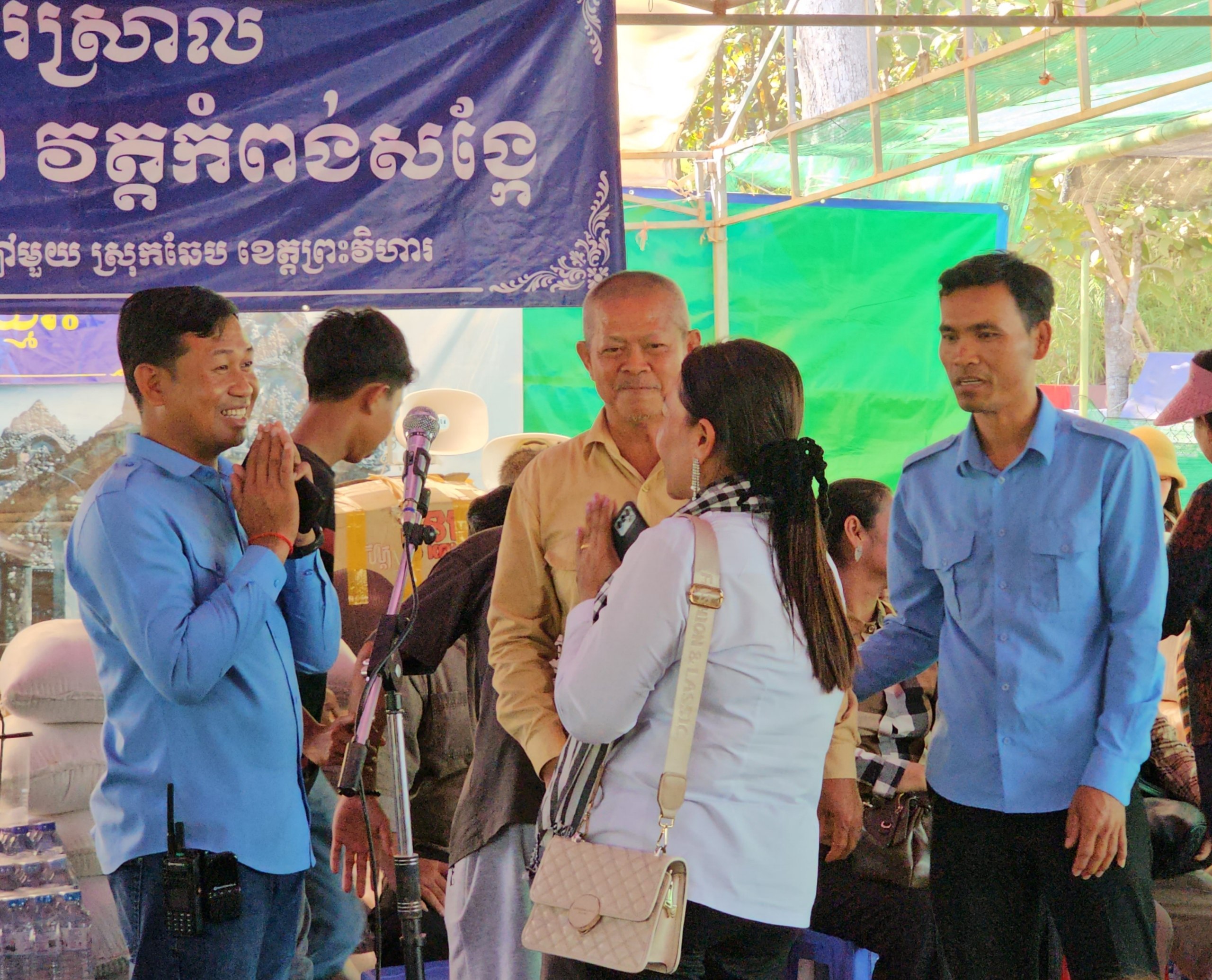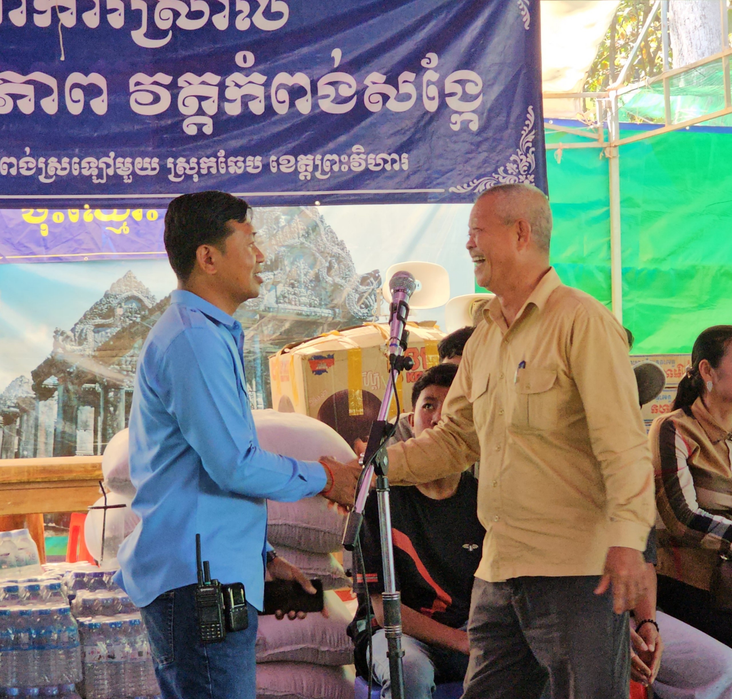 (ព្រះវិហារ)៖ លោក រស់ វីរ៉េត មេឃុំអារក្សត្នោត ស្រុកស្ទឹងត្រង់ ខេត្តកំពង់ចាម នៅថ្ងៃទី២០ ខែធ្នូ ឆ្នាំ២០២៥ បានដឹកនាំមន្ត្រីរាជការ ប្រជាពលរដ្ឋ និងបងប្អូនអាជីវករ នាំអំណោយស្បៀង ថវិកា មកចែកជូនបងប្អូនប្រជាពលរដ្ឋភៀសសឹកចំនួន ២០០គ្រួសារ កំពុងស្នាក់នៅបណ្តោះអាសន្នមណ្ឌលសុវត្ថិភាពវត្តកំពង់សង្កែ ក្នុងឃុំកំពង់ស្រឡៅមួយ ស្រុកឆែប ខេត្តព្រះវិហារ ជាប់ព្រំដែនឡាវ ក្រោមវត្តមានទទួលស្វាគមន៍យ៉ាងកក់ក្តៅពីលោក ឃិត សុធារ៉ា អភិបាលស្រុកឆែប។