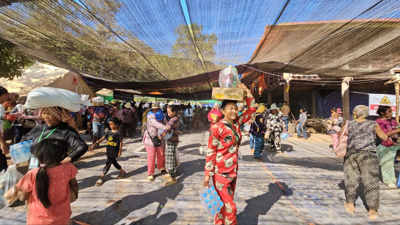 ដោយឡែកលោក រស់ វីរ៉េត មេឃុំអារក្សត្នោត បានថ្លែងថា៖ ដោយបានការអនុញ្ញាតពីលោក អ៊ុន ចាន់ដា អភិបាលខេត្តកំពង់ចាម និងលោកអភិបាលស្រុកស្ទឹងត្រង់ ថ្ងៃនេះលោកបានដឹកនាំប្រជាពលរដ្ឋ អាជីវករ និងមន្ត្រីរាជការ ចុះសួរសុខទុក្ខ និងនាំអំណោយមកចែកជូនបងប្អូនប្រជាពលរដ្ឋភៀសសឹកយើងនៅទីនេះ ក្នុងស្មារតី «ខ្មែរតែមួយ ខ្មែរស្រឡាញ់ខ្មែរ ខ្មែរជួយខ្មែរ»។